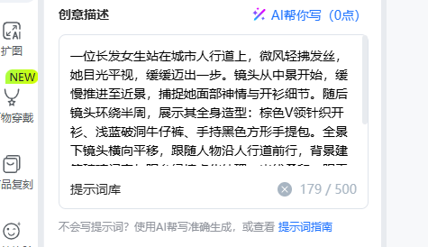 2、智能提示词:接下来就是让用户填写提示词描述自己想要的视频中的动态画面是什么样子的比如:一个女孩 在海边奔跑之类的: