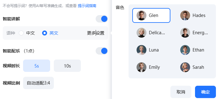 4、最后设置一下视频的时间长度,你可以选 5s 或者 10 s 的视频,然后点击下方的生成即可得到一条带有讲解以及背景音乐的完整的短视频了!