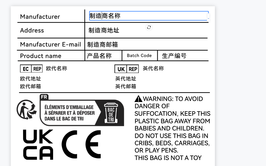 众所周知,对于跨境卖家而言,如何把好商品的品质关尤为重要的一环就是商品的包装上是否能贴合当地法律法规要求的标准。比如最常见的窒息风险警告、小部件警告等都需要有相应的标准来提醒消费者注意。在易可图这里,我们不需要想那么多,只要简单的三步操作就可以轻松解决这些问题: