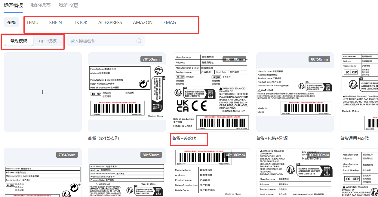 第一步:选择模板。平台上提供了上百个预设的不同应用场景下的合规标签模版(包含欧美日韩等多个国家及地区)基本涵盖了当下各个主流电商平台的要求;