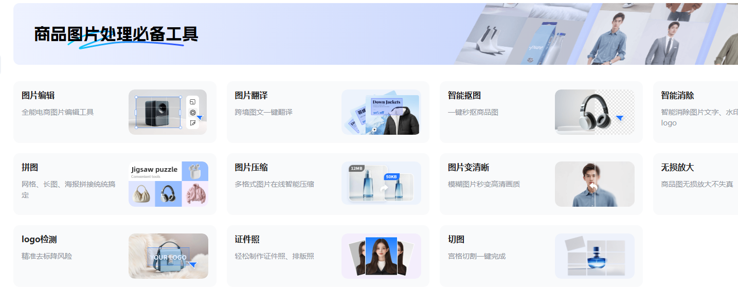 除此之外还有更实用的功能包括智能抠图、商品换色、批量裁剪、超清修复等等。无论你是想做普通的白底商品图或是吸睛的营销推广图,易可图都可以帮你解决。