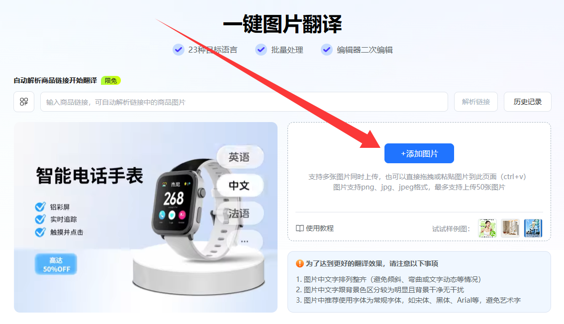 进入易可图,打开图片工具箱,选择图片翻译进入功能页面,然后将您要翻译的图片上传进来;