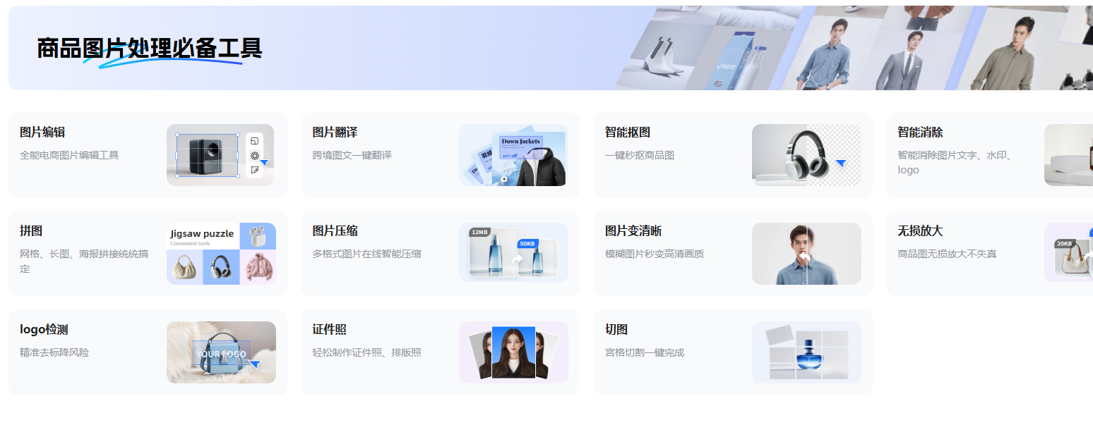 强基础编辑&处理能力:除了上面提到的这些黑科技外还有许多常见的普通图片编辑处理的能力,比如智能抠图、图片翻译、批量裁切、超清修复、多张合成一张等功能应有尽有,基本上能满足绝大多数人的日常所需;