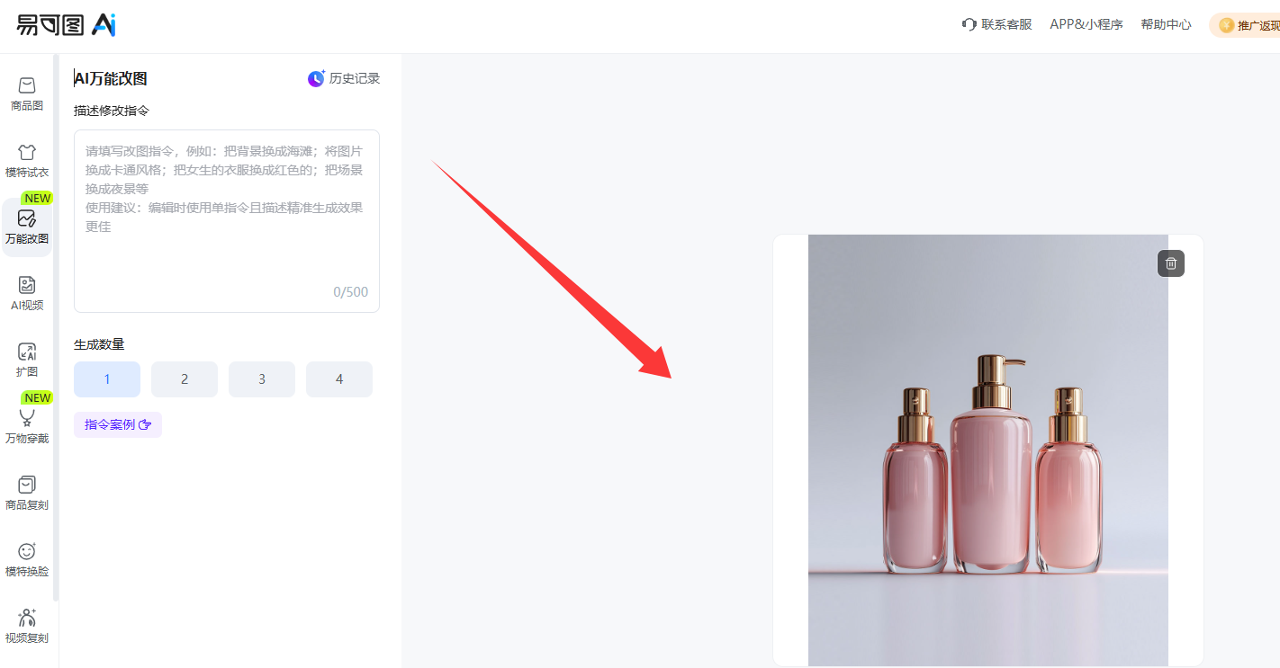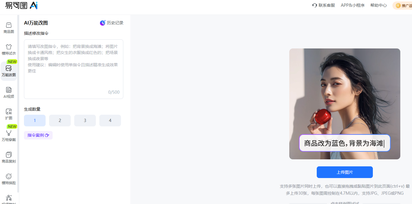 1、打开易可图AI万能改图,上传你需要修改的图片;