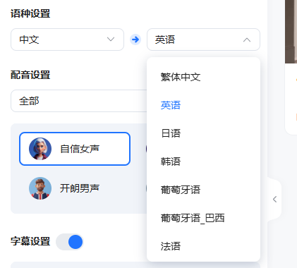 自定义配音:内置多个 AI合成音库,可根据不同场景随意切换,找到最适合你的声音;
