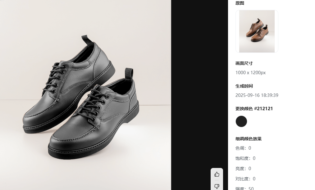 步骤四:最后按下【立即生成】按钮即可获得一张最终的换色后商品图。