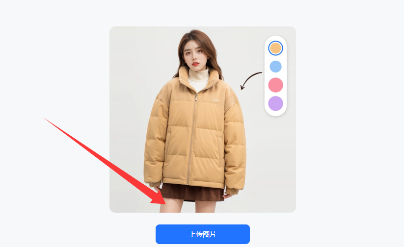 步骤一:进入功能上传图片。首先进入易可图商品换色功能页面,之后将你需要更换的颜色的商品图片上传,支持一次最多同时上传50个商品图片。