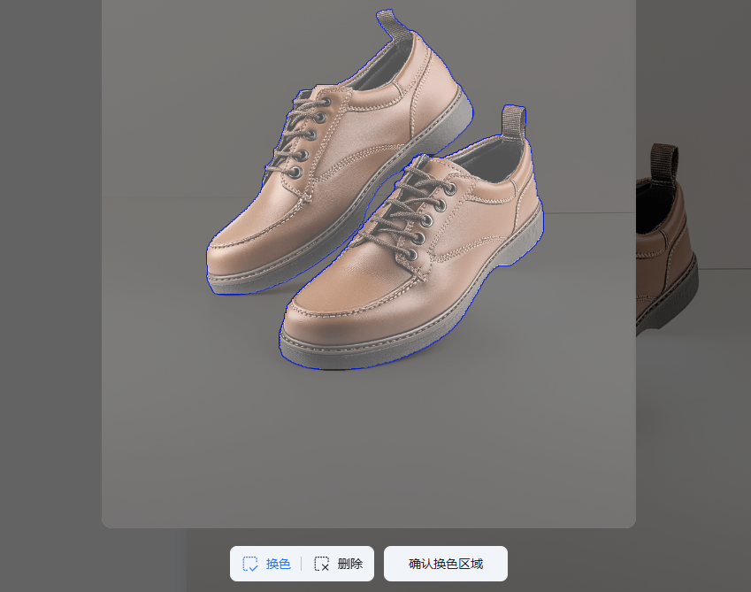 步骤二:智能点选换色区域。只需要简单的动一下鼠标就可以让 AI帮助你完成商品所有需要换色的位置选取。当你点击了某个位置的时候会被 AI自动识别并且将其圈出一个高光区来表示这个被选中的区域将会被替换成新的颜色。