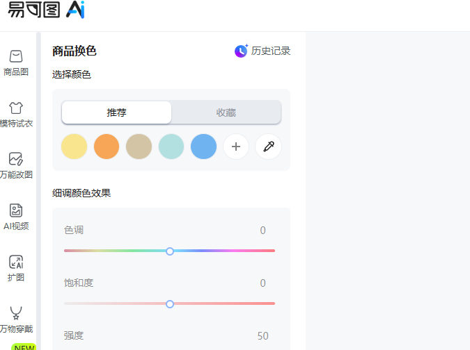 商品颜色想要一键替换可以使用易可图的商品换色或AI万能改图功能,具体操作如下: