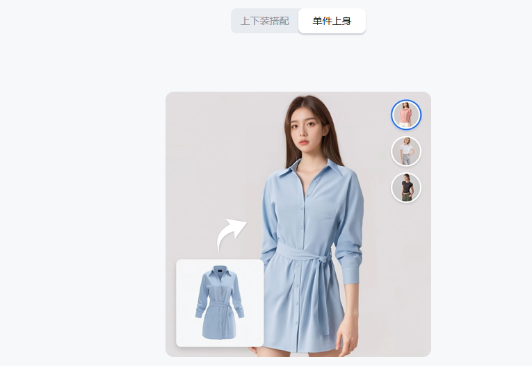 ZMO.AI 是一个强大的AI图像生成工具,它的AI模特图生成功能,需要你提供一张服装产品图(可以是白底图或真人拍摄图),然后ZMO就能以此为基础,生成无限张由不同AI模特、在不同姿势和背景下的全新模特图,直接一生万物,极大地丰富了商品的展示角度。