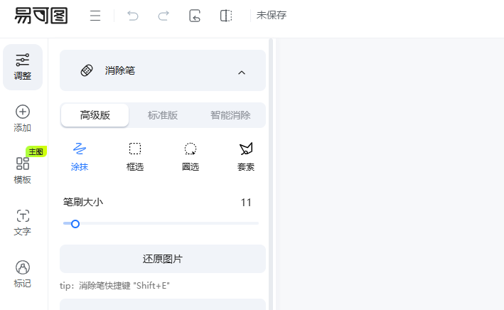 如果图片中的遮挡物比较小,是小瑕疵的话可以使用易可图消除笔涂抹消除: