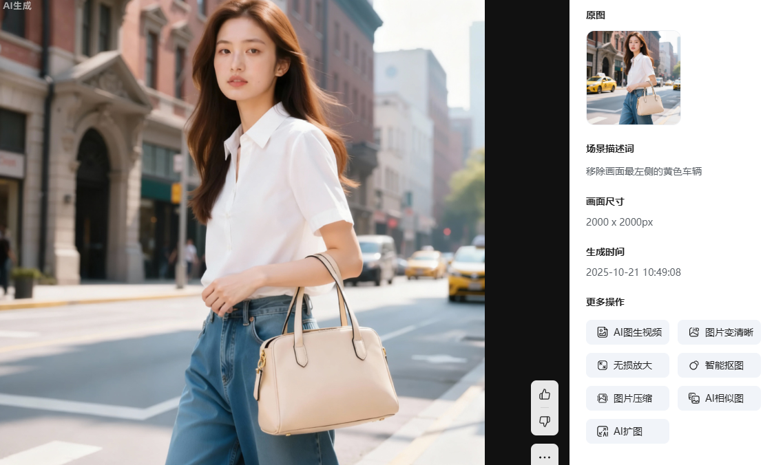 3、最后AI会根据您提供的文字指令,对图片进行进行重绘和优化,确保最终去除效果自然完美。