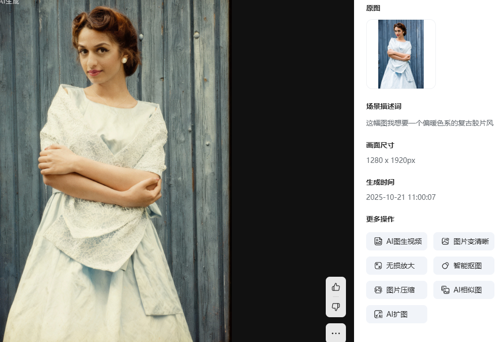或“这幅图我想要一个偏暖色系的复古胶片风”