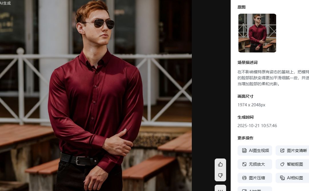 光影是提升模特图质感的重要因素之一,而 AI万能改图可以帮助你一键打造专业级灯光环境。