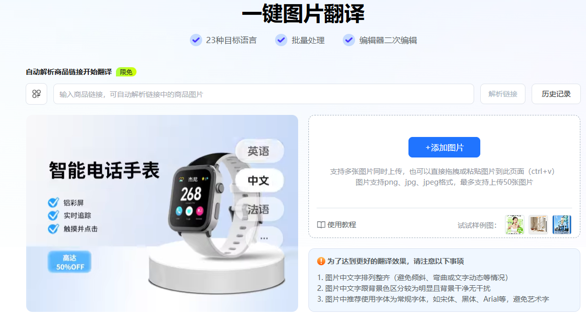一个图片翻译,易可图图片翻译目前支持翻译成23种语言,基本覆盖了全球主流语言,还可以批量翻译。