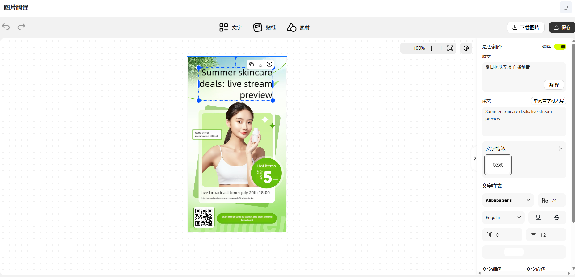 另外,易可图的图片功能还支持二次编辑,我们可以将翻译好的图片在编辑器中打开,随意修改翻译文本的内容或样式等,确保翻译够准确、文本样式够匹配。