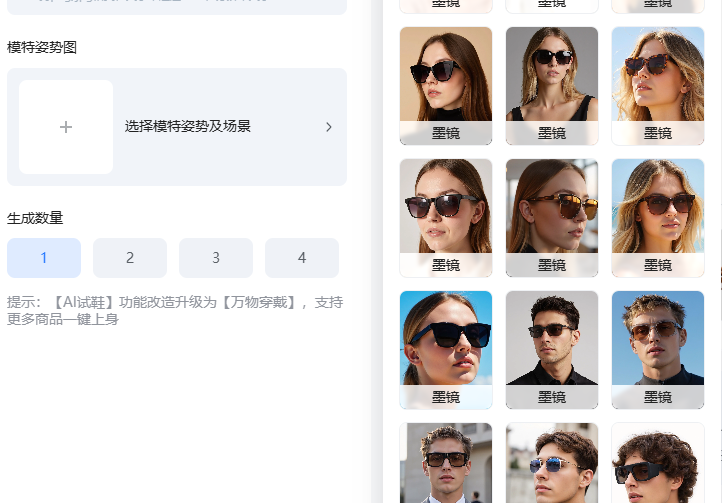 AI试戴镜框网站有哪些?随着AI技术的发展,现在人们在选购商品时可以一键生成试戴效果,提升购物体验,而商家们也可以利用这个技术来生成模特图,让自己的商品展示更加吸引人。